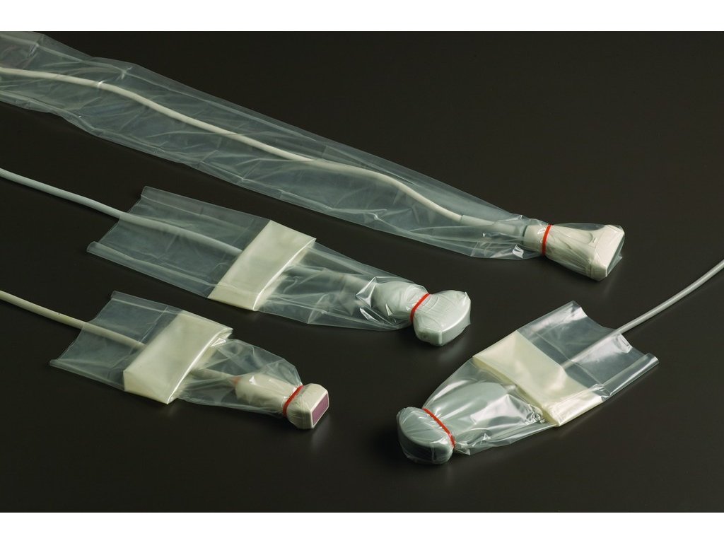 Sterilní ochranné návleky CIV-Flex (bez latexu) 10,2x147 cm skládané teleskopicky pro snadnou aplikaci gelu a nasazení na sondu, prodloužená délka pro další sterilní ochranu, balení obsahuje 24 ks včetně sterilního gelu Aquasonic 100 a barevných elastických pásků na uchycení.